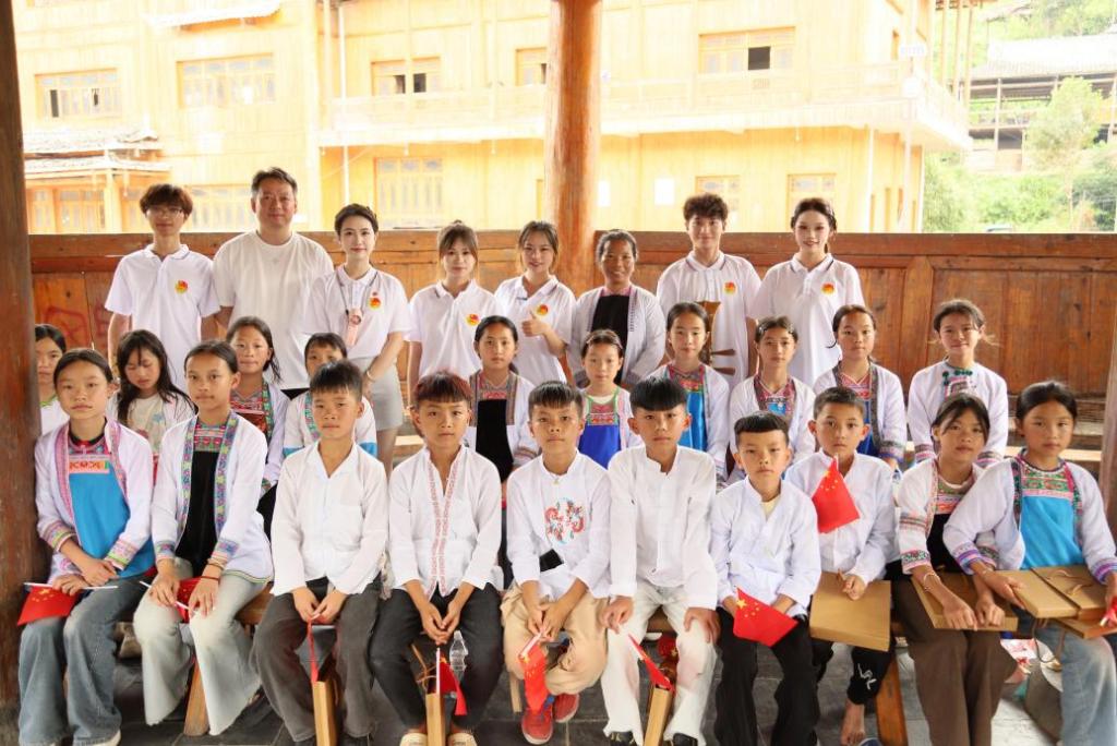 7月17日,“青春从江·侗力同心”乡村振兴促进团成员前往黔东南州从江县小黄侗寨,与当地少年儿童开展文化交流活动,通过共唱侗族歌谣等形式,推动民族文化传承,凝聚青春力量。