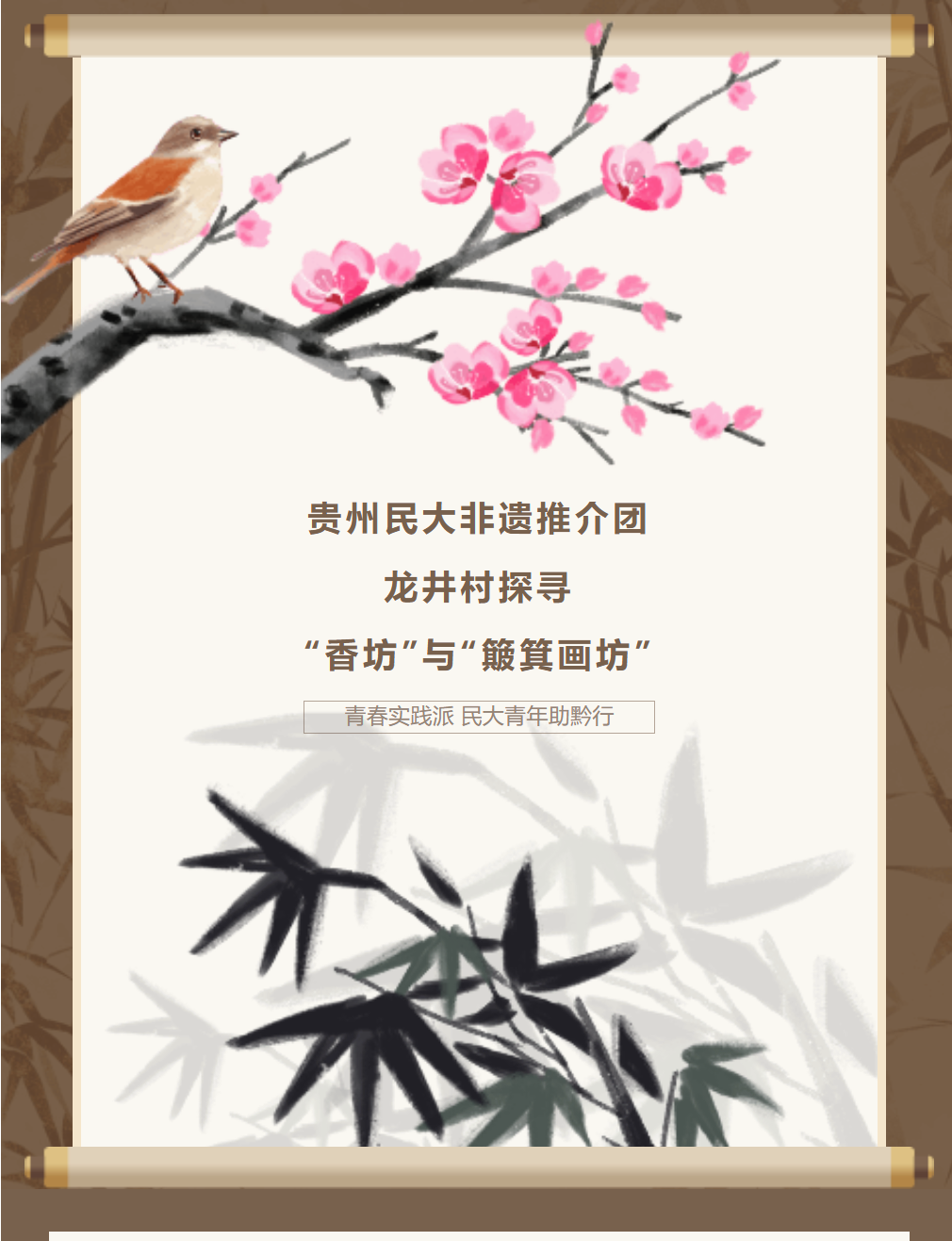 近日,贵州民族大学旅游与航空服务学院非遗推介团走进贵阳市花溪区龙井村,开展以“探寻非遗魅力,助力文化传承”为主题的三下乡调研活动,聚焦当地“簸箕画”与“香坊”两项非遗技艺