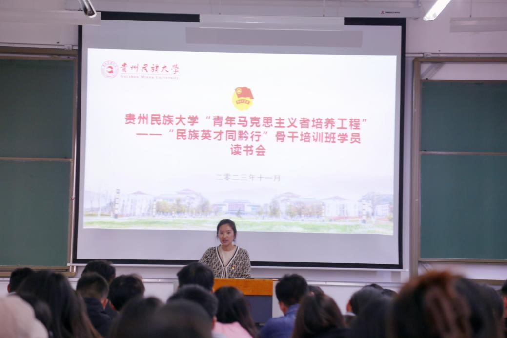 11月27日,为贯彻落实党的二十大精神,全面学习贯彻习近平新时代中国特色社会主义思想,贵州民族大学 “青年马克思主义者培养工程”—“民族英才同黔行”骨干培训班读书会,在贵州民族大学大学城校区与花溪校区同时召开。