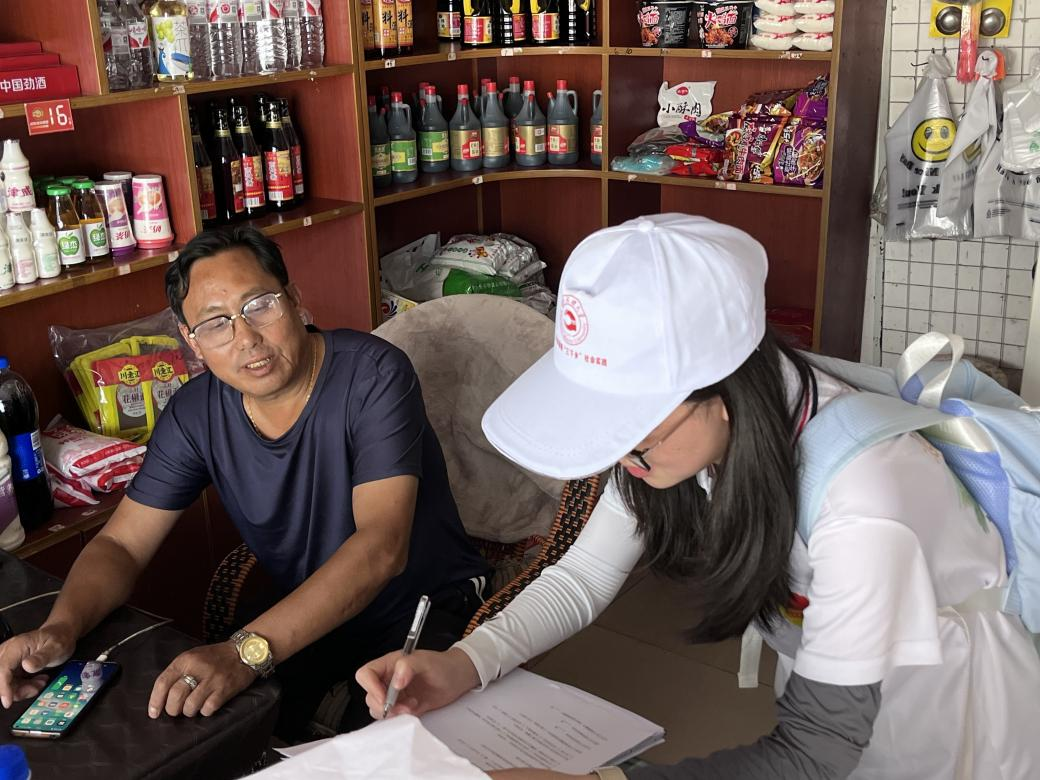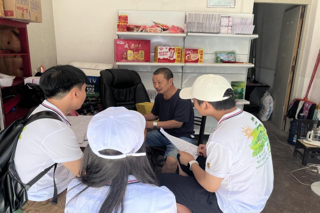 团队成员与花茂村村民进行问卷调查