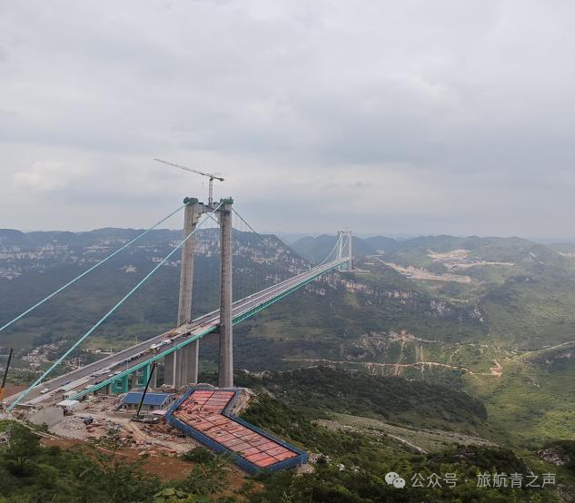来到花江大桥,站在桥边远眺,这里横跨北盘江的特大桥如巨龙般凌空飞架,两岸悬崖峭壁,人类文明与自然的碰撞所产生的世界强梁。听当地文宇老师讲述,花江大桥预计在九月正式开通;此外,桥旅融合项目的建设也在同步推进,包括观光电梯、玻璃栈道、高空观光咖啡厅和高空餐厅等设施,也预计将其打造成5A级景区。“大桥的每一根钢索都凝聚着建设者的智慧,每一寸桥面都存在着乡亲们对美好生活的期盼”。