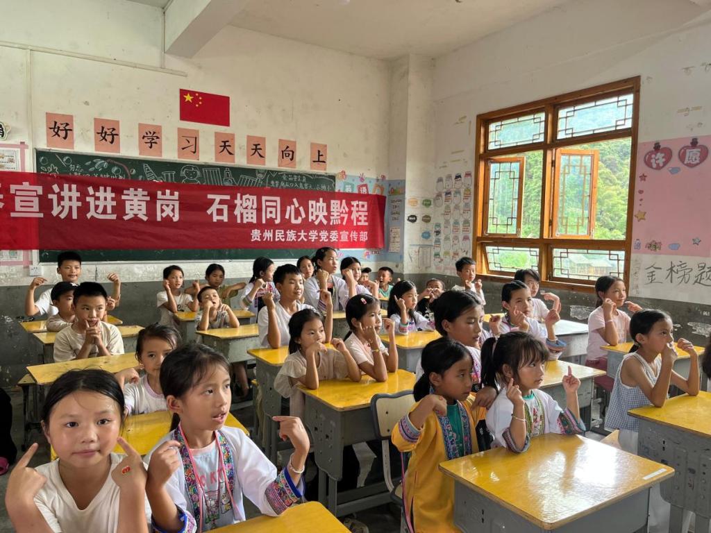 盛夏的黄岗侗寨,鼓楼侗歌曲调悠悠,回荡着各族青年共筑团结的赤诚心声。7月21日—25日,由贵州民族大学党委宣传部组建的“红石榴”民族团结进步宣讲团走进黔东南州黎平县黄岗侗寨,开展暑期“三下乡”社会实践活动。团队聚焦“铸牢中华民族共同体意识”这一主线,将民族团结进步宣讲、普通话推广融于一体,既以热忱触摸民族村寨的发展肌理,更以“沉浸式实践课堂”这一鲜活形式,在民族地区播撒团结进步种子,促进各民族交往交流交融。
