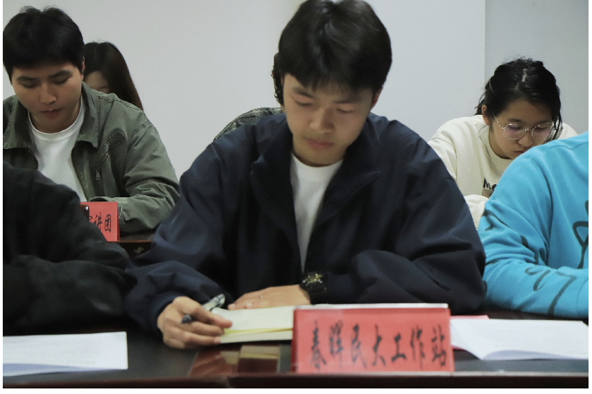 随后,校艺术团张峻睿和春晖民大工作站龙云锋作学习分享;各部门助理作工作汇报。