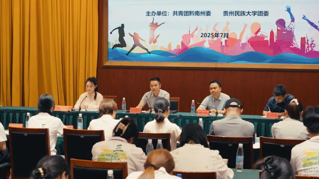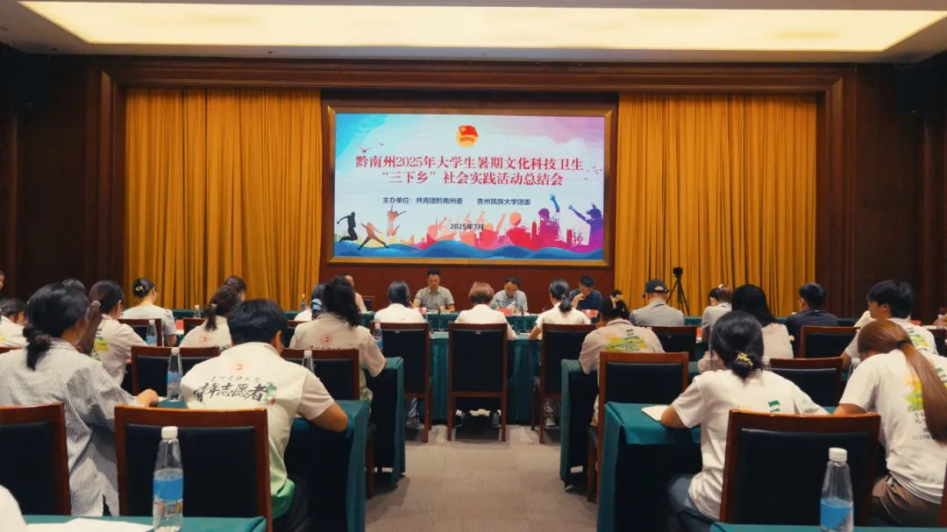 近日,黔南州2025年大学生暑期文化科技卫生“三下乡”社会实践活动总结会在都匀举行。本次“三下乡”活动由贵州民族大学团委与共青团黔南州委携手开展,依托校地结对共建机制,成功选派13支实践团队,深入全州9个县(市)服务一线,以实际行动为乡村振兴注入青春活力。总结会上,黔南团州委书记袁兆晓钊、贵州民族大学团委书记胡斌出席会议并讲话,黔南团州委副书记许雪主持会议,贵州民族大学“三下乡”师生代表、实践地县(市)团委负责人参加。