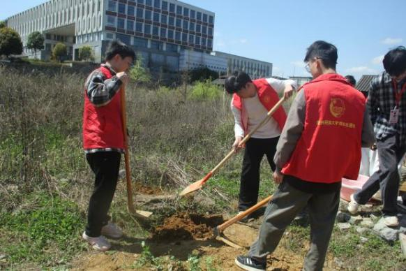 “播种希望”主题植树护绿行动:在劳动教育基地集中开展春季植树活动。活动前进行树种规划;活动中,同学们在老师指导下挥锹培土、扶苗浇水,亲手种下一株株树苗,各班级承诺进行长期养护。此举将美化校园从“清洁维护”延伸到“生态增绿”,赋予了劳动更深远的生态意义。