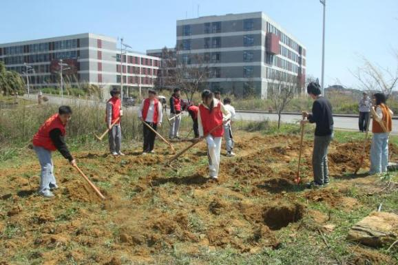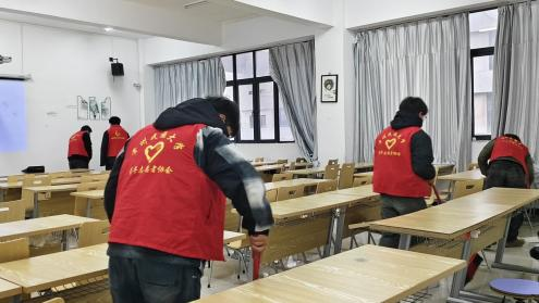 志愿者们在清理建工楼、劳动教育基地